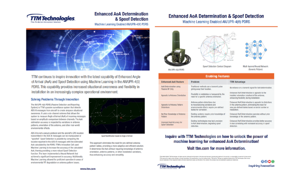 TTM's AN/UPR-4(V) Passive Detection & Reporting System (PDRS) is a passive, multi-channel Automatic Dependent Surveillance-Broadcast (ADS-B), Universal Access Transceiver (UAT) and Mode 5 Level 2 squitter reporting and cueing system. Designed with Department of Defense (DoD), Federal Aviation Administration (FAA) and Eurocontrol regulations in mind, PDRS acts as a receive-only system that provides situational awareness to civil and military aircraft, effectively eliminating radio frequency interrogation transmissions in the airspace. It is deployable in shipboard and airborne environments (fixed- and rotary-wing aircraft) and has been fielded on ground-based radar installations and mobile radar sites. The system's receiver, processor and tracker are based on the common software and firmware of our AN/UPX-44A IFF interrogator.